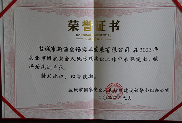喜報!新灘鹽場榮獲“鹽城市2023年度國家安全人民防線 建設(shè)先進(jìn)單位”榮譽(yù)稱號
