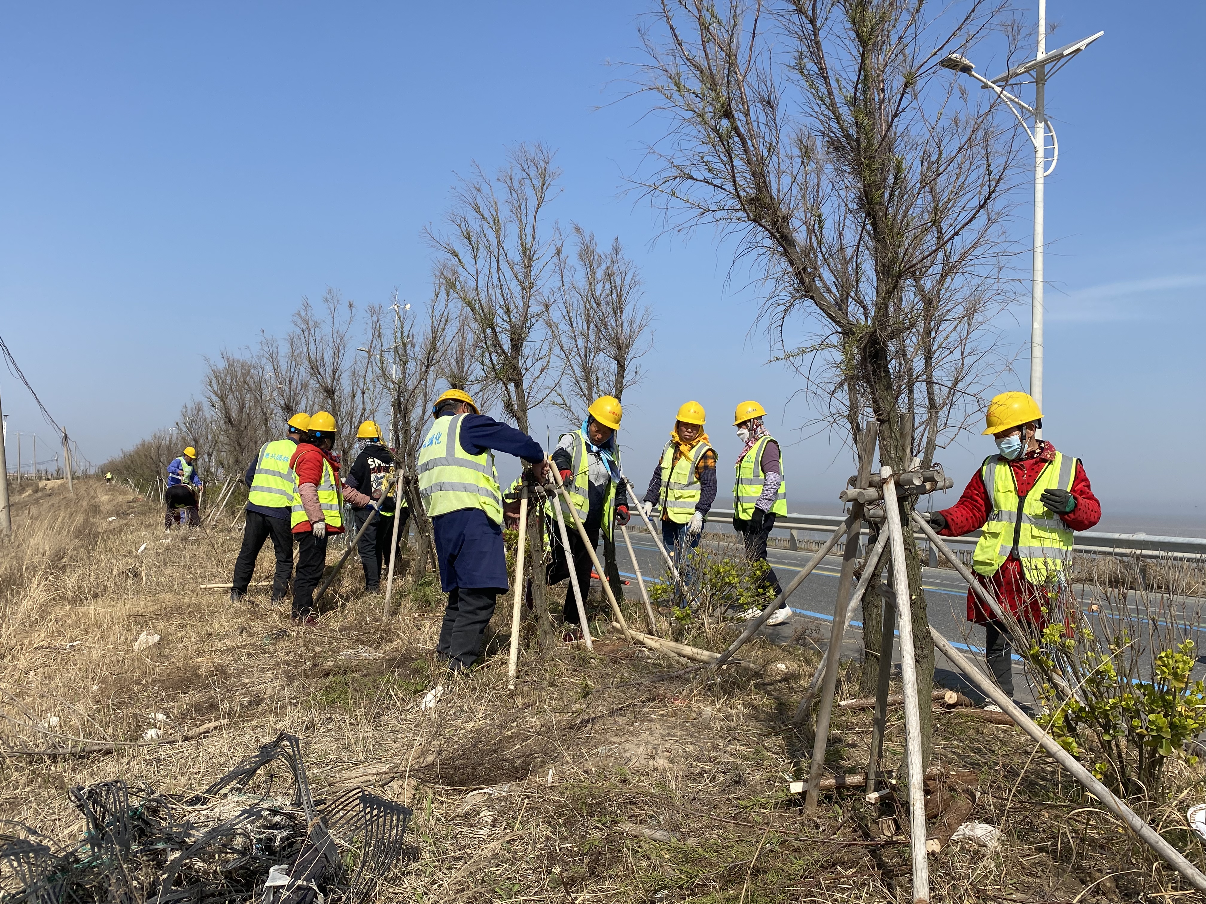 春回大地,萬物復(fù)蘇,隨著春季氣溫回暖,綠化樹木由休眠期轉(zhuǎn)入生長期,海堤路邊的鹽松經(jīng)過潮汛強風(fēng)的洗禮后,部分樹苗出現(xiàn)傾斜或倒伏情況。近日,黨員干部發(fā)揮帶頭作用,新灘鹽場共120余名干部職工開展苗木扶正專項行動。2023-04-06 -