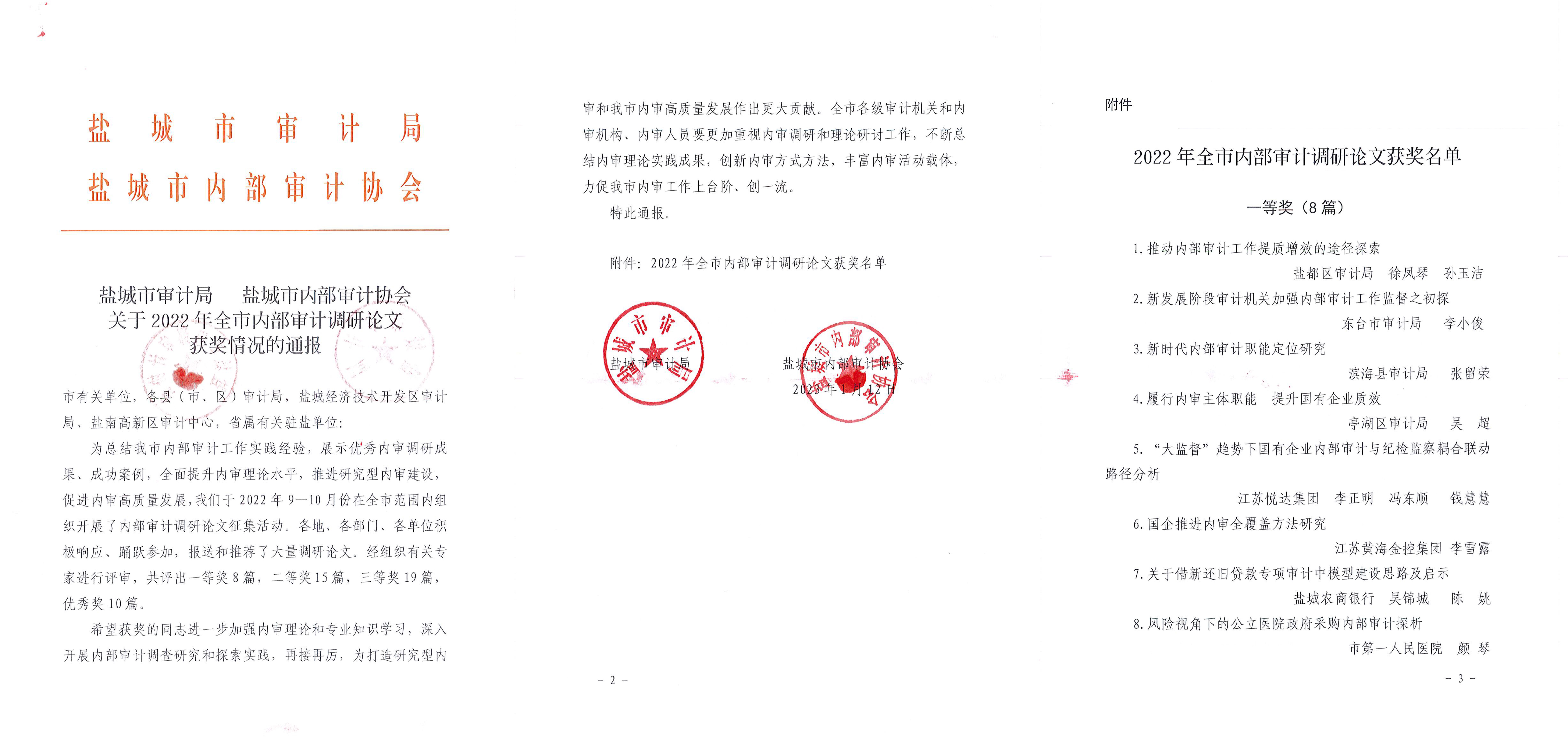 近日,鹽城市審計(jì)局、鹽城市內(nèi)部審計(jì)協(xié)會在全市范圍內(nèi)組織開展了內(nèi)部審計(jì)調(diào)研論文征集活動。集團(tuán)審計(jì)部積極響應(yīng)該項(xiàng)活動,部門全體員工積極備稿,經(jīng)初選、終選確定三人投稿。1月12023-01-13 -