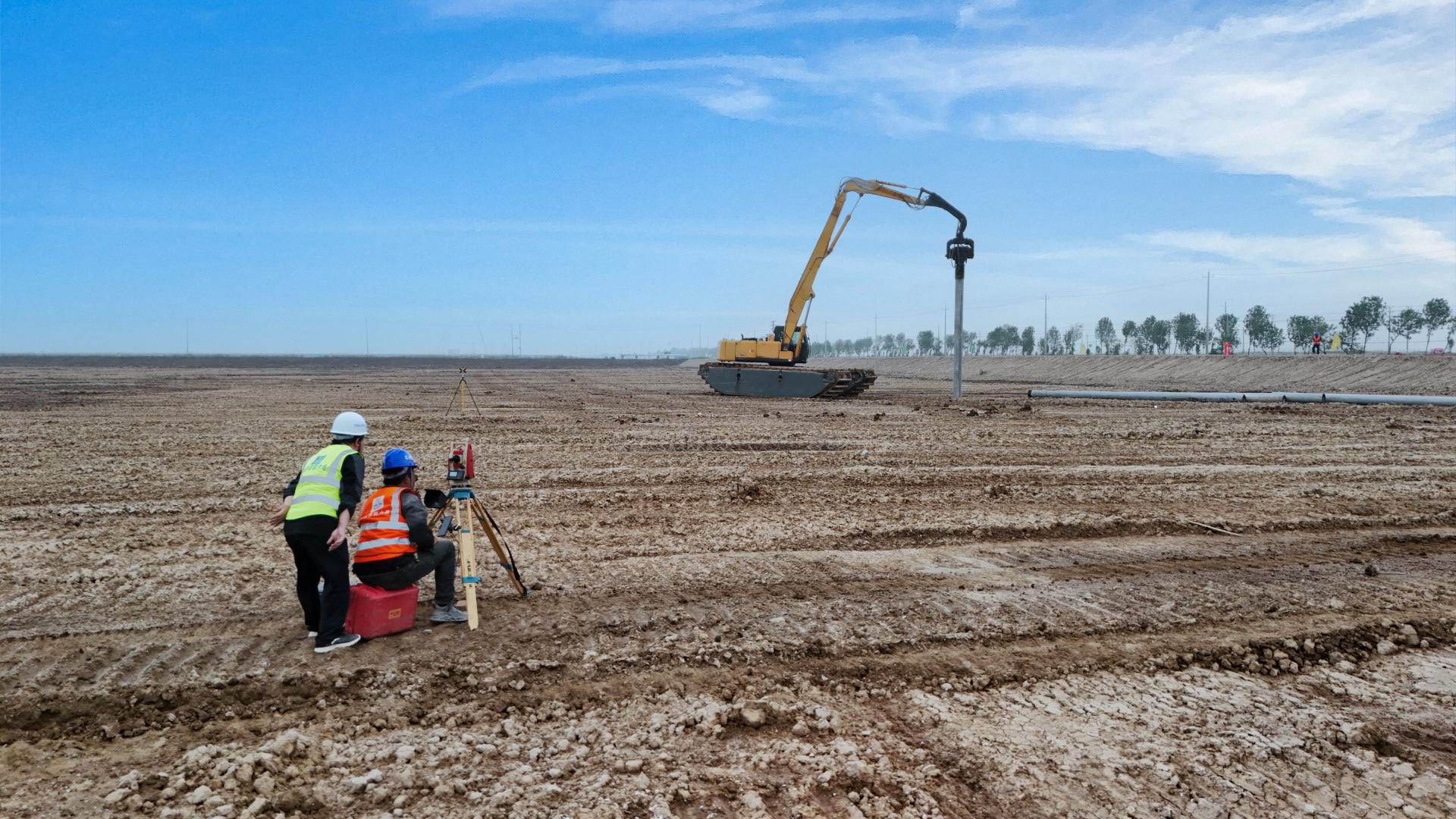 一線傳真∣按下“啟動(dòng)鍵” 向綠注新能!興東120MW漁光互補(bǔ)發(fā)電項(xiàng)目首根樁基成功打入