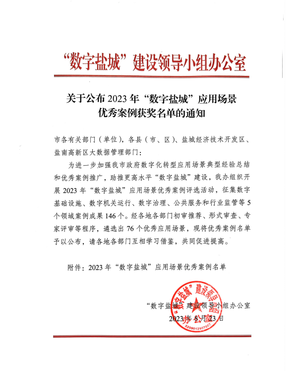 近日,“數(shù)字鹽城”建設(shè)領(lǐng)導(dǎo)小組辦公室公布了2023年“數(shù)字鹽城”應(yīng)用場景優(yōu)秀案例名單,海興集團“智慧工地指揮中心”案例獲評一等獎。2023-09-07 -