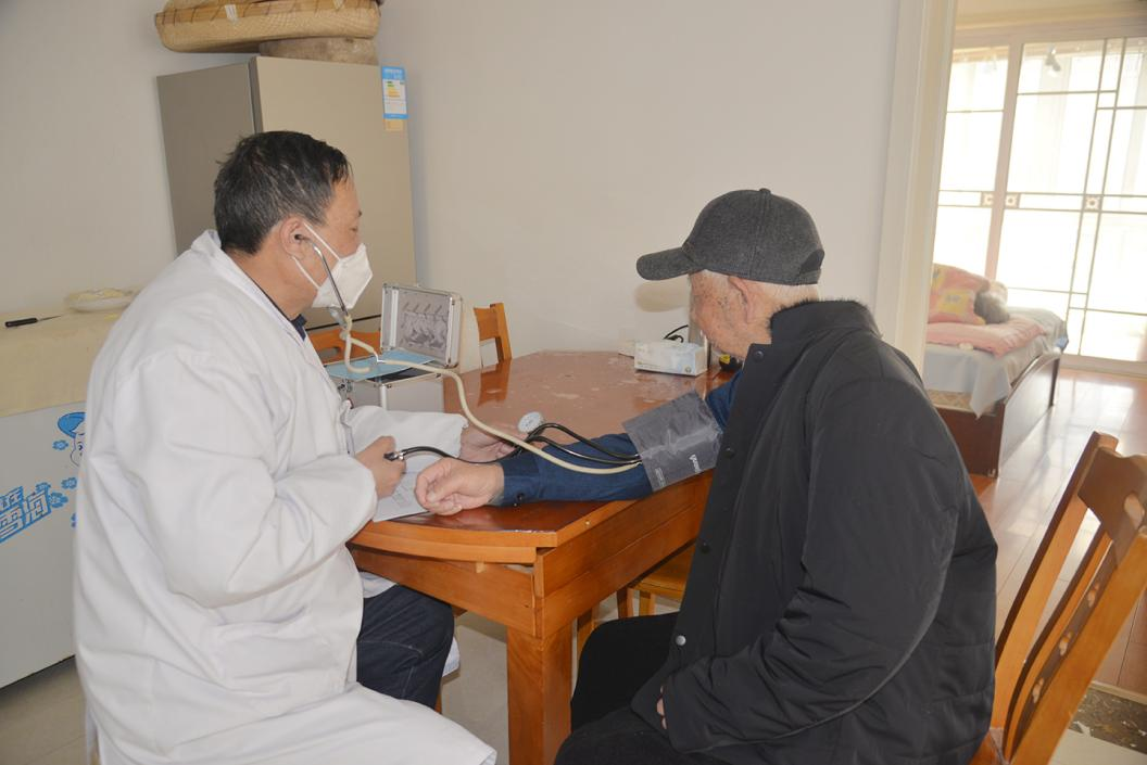 近日,灌東鹽場黨群工作部工作人員和家庭保健醫(yī)生來到行動不便的離休干部家中,進行上門健康體檢。 -