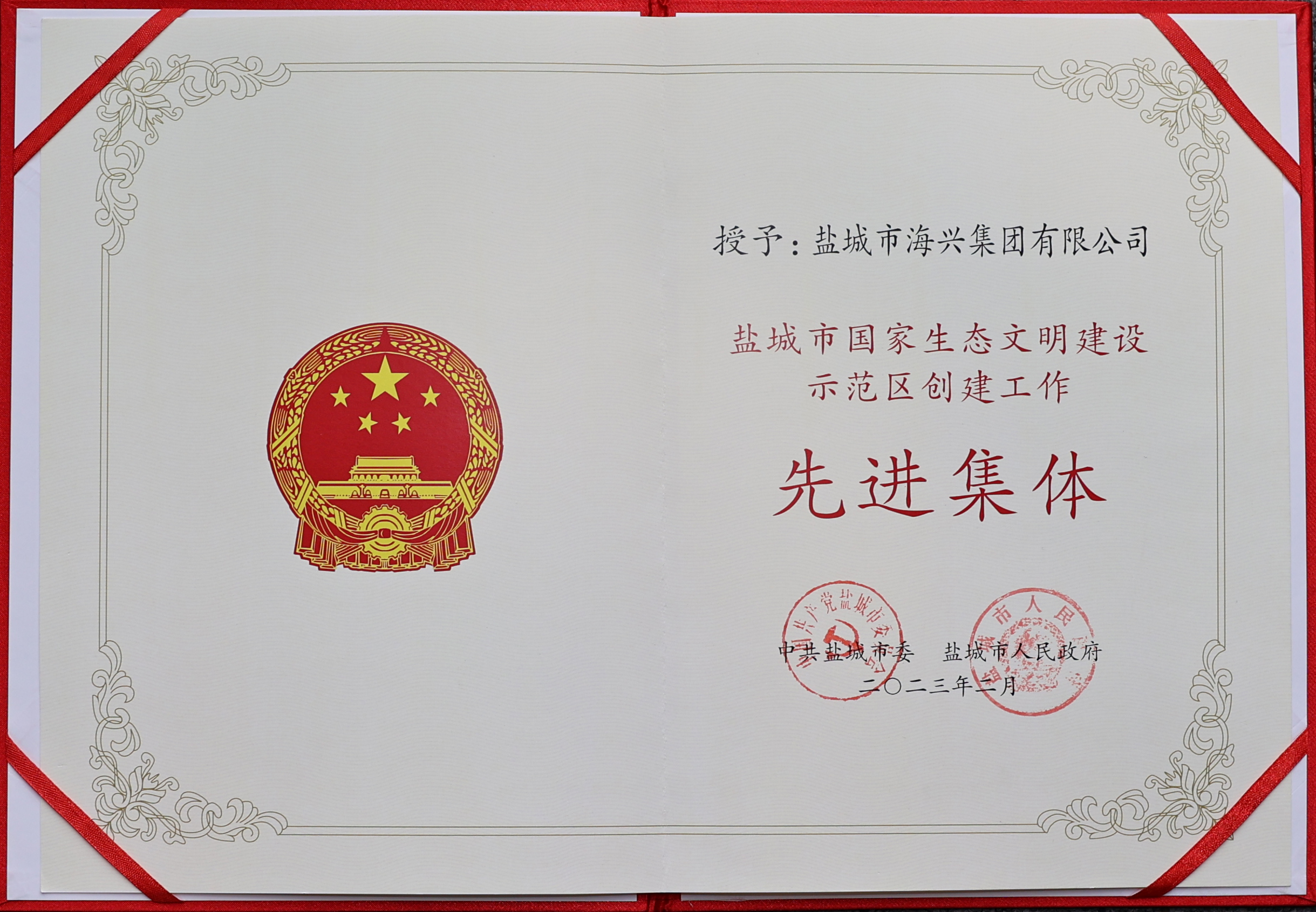 近日,市委、市政府表彰了一批鹽城市國家生態(tài)文明建設(shè)示范區(qū)創(chuàng)建工作先進(jìn)集體和先進(jìn)個(gè)人。其中,海興集團(tuán)榮獲“鹽城市國家生態(tài)文明建設(shè)示范區(qū)創(chuàng)建工作先進(jìn)集體”榮譽(yù)稱號(hào)。2023-04-04 -