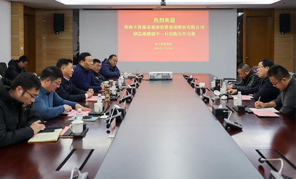 1月13日下午,集團黨委書記、董事長董毅會見天沐溫泉旅游投資集團股份有限公司副總裁郝建中一行,雙方就月亮灣度假區(qū)海濱溫泉酒店項目合作開展交流探討。2025-01-15 -
